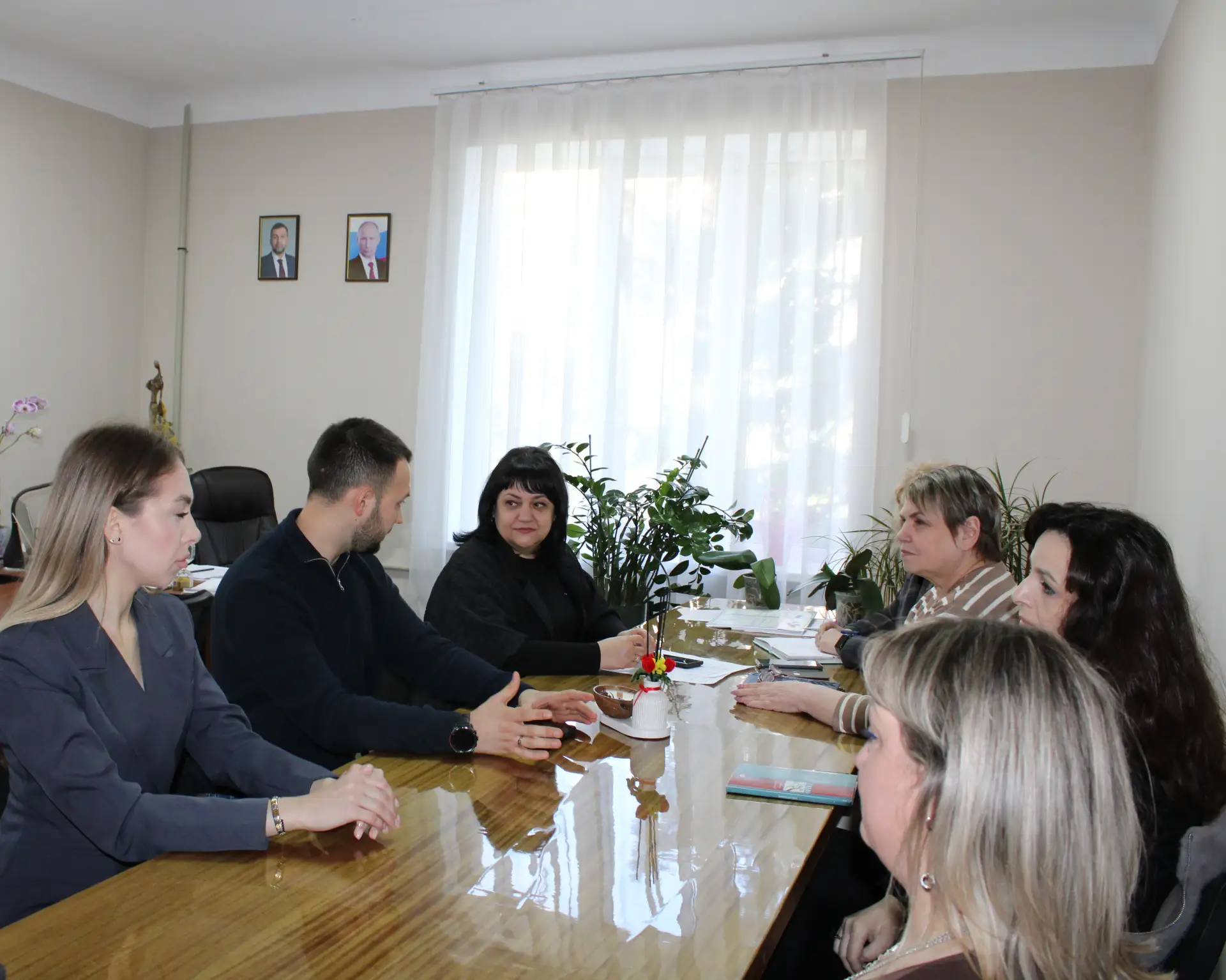 Сегодня, 20 апреля, в администрации городского округа Горловка состоялось рабочее совещание с депутатом Народного Совета Донецкой Народной Республики, членом комитета Народного Совета по молодежной политике и патриотическому воспитанию, заместителем председателя «Молодой Гвардии Единой России» по работе в исторических регионах Сергеем Добровольским, в котором приняла участие заместитель главы администрации городского округа Горловка Светлана Кудинова и руководители профильных структурных подразделений.