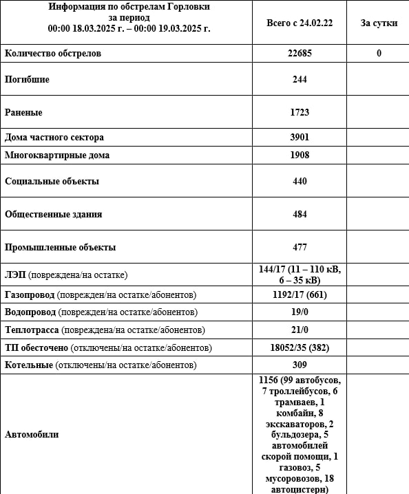 Информация по обстрелам Горловки с 00:00 18.03.2026 г. по 00:00 19.03.2026 г.@Prikhodko1970